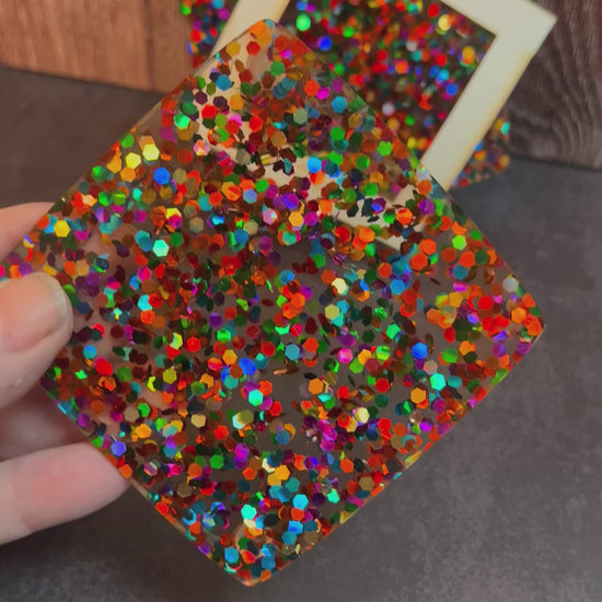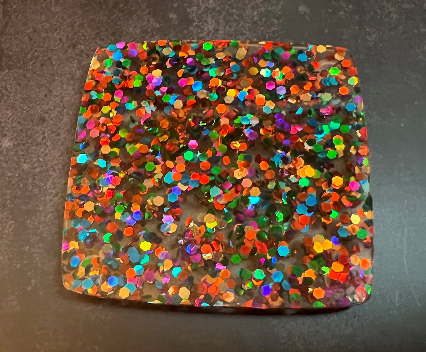 Bring a little after-hours magic to your table with the Carnival At Night coaster. Packed with bold, chunky glitter that shifts and sparkles like a midway lit after dark, this piece keeps your drink lifted while adding a playful pop of color. It’s sturdy, festive, and just the right amount of flashy—perfect for anyone who wants their everyday moments to feel a bit more like a celebration.