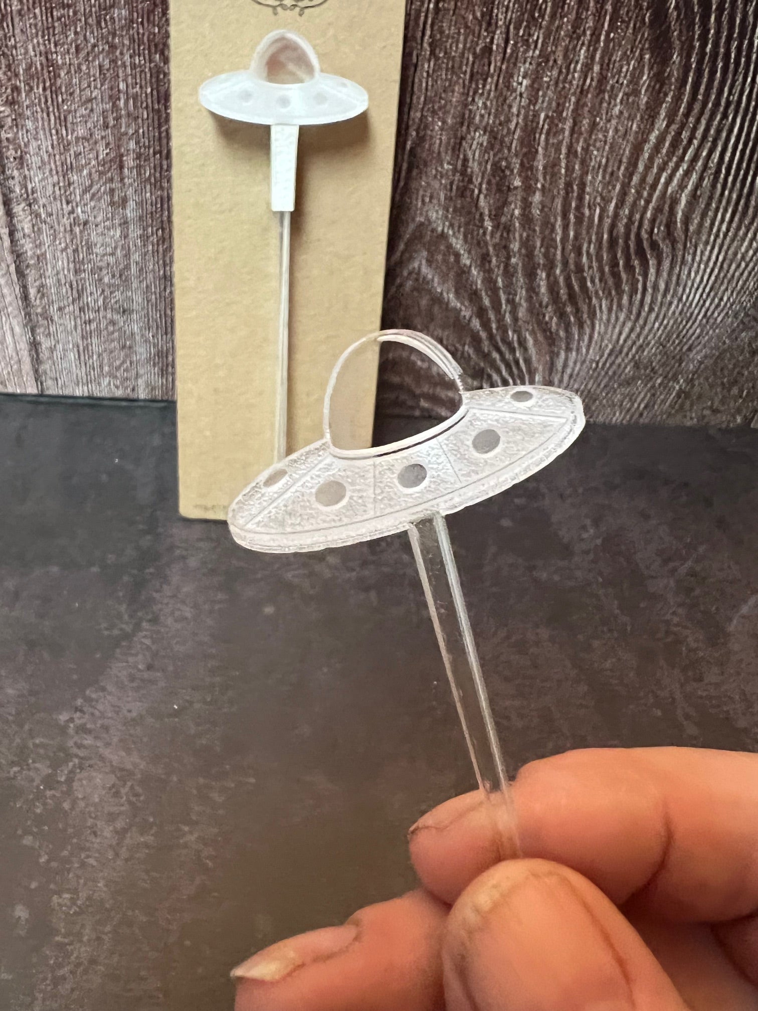 Add a little extraterrestrial charm to your cocktails, mocktails, or party platters. These flying-saucer-shaped garnish picks are sturdy, reusable, and just the right amount of whimsical. Perfect for olives, cherries, citrus twists, cheese cubes—or anything else you want to beam up in style.